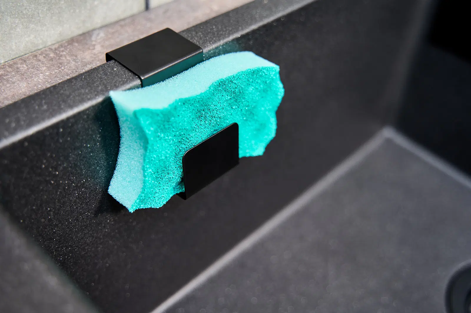 Z pozoru niewielki gadżet, a w praktyce niezwykle pomocny. Haczyk pozwala odwiesić gąbkę tak, by nie stykała się z innymi przedmiotami – to rozwiązanie bardziej higieniczne i wygodne niż odkładanie jej luzem. Dzięki niemu oszczędzasz też cenne miejsce na blacie lub w komorze zlewu. Taki drobiazg sprawia, że kuchnia pozostaje uporządkowana, a prace związane ze zmywaniem są bardziej komfortowe i estetyczne.