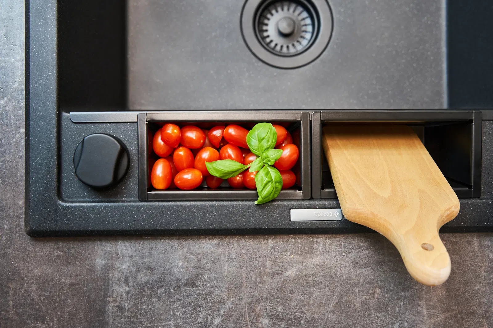 Kolekcja Deante Magnetic to nie tylko same zlewozmywaki, ale także komplet praktycznych akcesoriów, które pozwalają maksymalnie wykorzystać ich możliwości. Dzięki zastosowaniu magnesów możesz dowolnie konfigurować przestrzeń wokół komory i dopasować ją do swoich potrzeb. Wszystkie dodatki zostały wykonane z wysokiej jakości stali nierdzewnej i występują w różnych wykończeniach, dzięki czemu całość prezentuje się spójnie i elegancko.