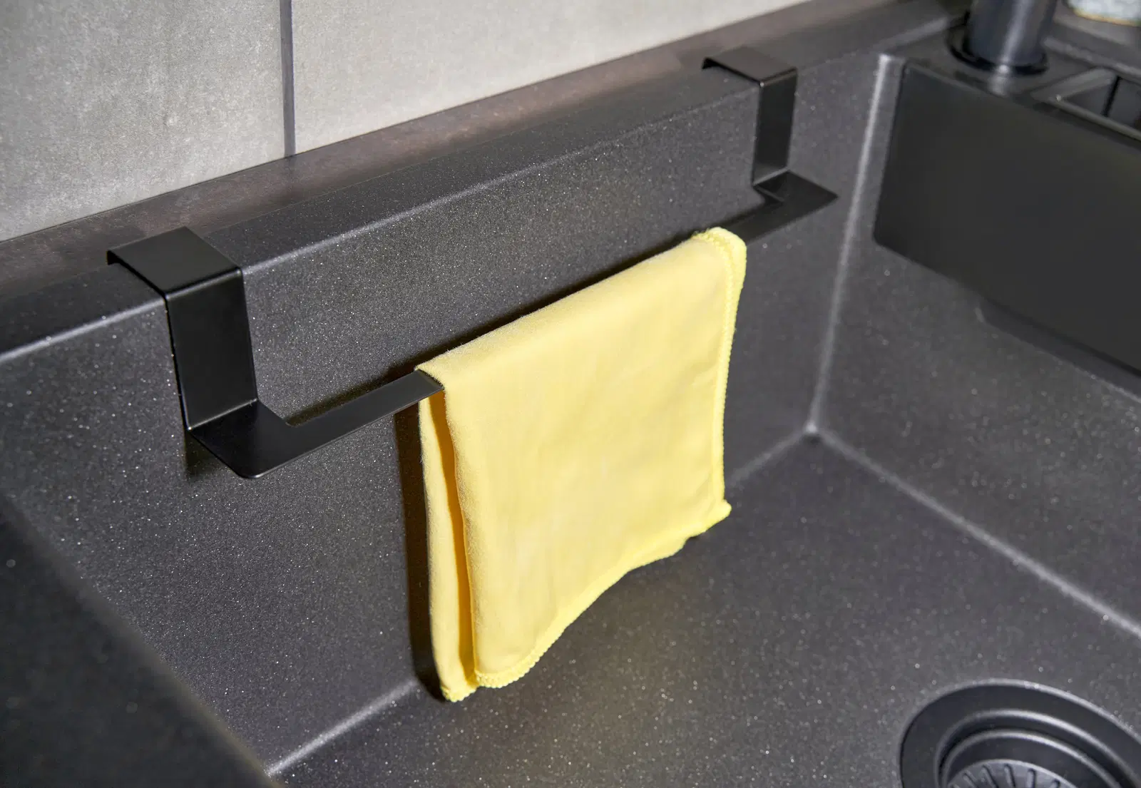 Reling zawieszany na rancie zlewozmywaka to prosty sposób na organizację przestrzeni podczas zmywania. Dzięki niemu mokra ściereczka zawsze ma swoje miejsce, nie ląduje na blacie ani na kranie, a przy tym szybciej wysycha. Montaż i demontaż relingu zajmuje dosłownie chwilę, co ułatwia czyszczenie zarówno samego akcesorium, jak i zlewu. To praktyczny detal, który znacząco podnosi wygodę codziennej pracy w kuchni.