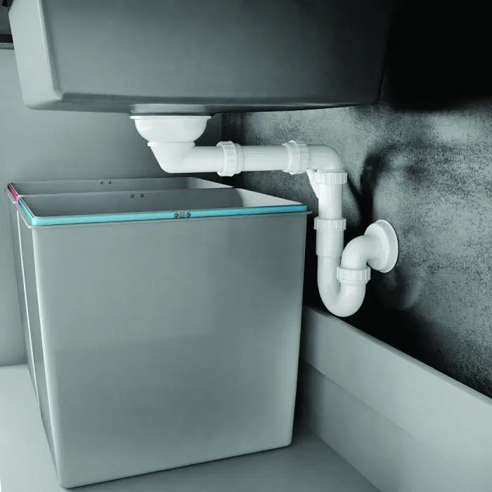 Dołączony do zestawu syfon „Space Saver” to praktyczne rozwiązanie dla wszystkich, którzy chcą w pełni wykorzystać przestrzeń w szafce pod zlewem. Zamiast plątaniny rur i kolanek zajmujących każdy centymetr, tutaj mamy nowoczesną, teleskopową konstrukcję, którą można łatwo dopasować do własnych potrzeb. Dzięki temu w szafce zostaje sporo wolnego miejsca – idealnego choćby na kosze do segregacji odpadów, pojemniki z domowymi przetworami czy środki czystości. Co ważne, syfon umożliwia również podłączenie zmywarki lub pralki, więc cała instalacja staje się jeszcze bardziej funkcjonalna.