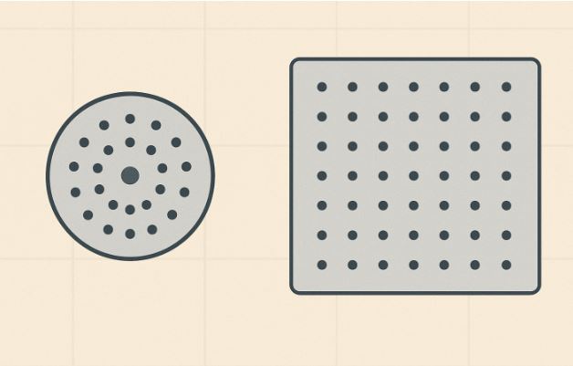 Okrągłe, kwadratowe, prostokątne – kształt deszczownicy warto dopasować do pozostałej armatury. Sugerując się stylem Twojej łazienki postaw na: