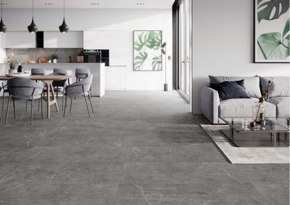 To najbardziej wielofunkcyjne wnętrze – ma być zarówno miejscem odpoczynku, jak i rozmów i spotkań. Dlatego warto postawić na kolory uniwersalne, ale wyraziste: szarości, beże, zgaszone zielenie, a także granat lub grafit jako kolor akcentowy. Szarość i beż tworzą doskonałe tło dla mocniejszych akcentów, takich jak np. poduszki, dywan, jedna ze ścian lub kolekcja ceramiki na regale. W nowoczesnych, dużych salonach, doskonale sprawdzi się marmur, oraz drewno. Również w aranżacji tego pomieszczania mogą przyjść Ci z pomocą producenci, których znajdziesz w naszym sklepie, tacy jak m.in. Cerrad, oferujący drewnianą harmonię, lub Ceramica Limone stawiająca na kamienne, naturalne szarości.