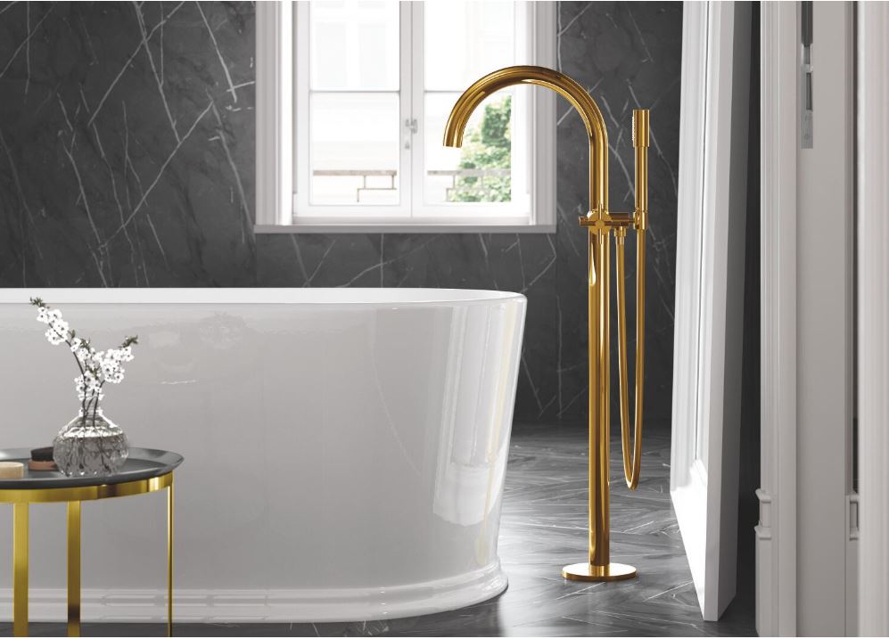 - złota bateria wolnostojąca, taka jak Grohe Atrio, dodaje luksusowego charakteru i harmonizuje z pozostałą armaturą,