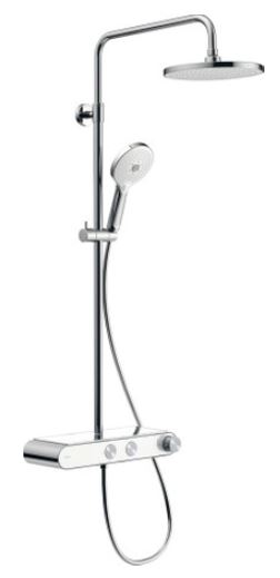 Bateria termostatyczna SmartControl zapewnia wygodę i precyzję – jednym przyciskiem ustawisz temperaturę i siłę strumienia, a technologia TurboStat® eliminuje wahania. Komfort kąpieli podnoszą: słuchawka z funkcją masażu, wąż TwistFree oraz kolumna z ruchomym ramieniem (45 cm). System SpeedClean chroni przed osadami, a powłoka StarLight® gwarantuje trwały połysk. Zestaw jest kompatybilny z podgrzewaczami przepływowymi od 18 kW, co czyni go uniwersalnym wyborem do każdej łazienki.