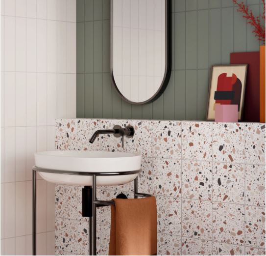 Płytki lastryko + jednokolorowe płytki ścienne – wyeksponuj terrazzo