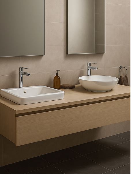 W większych łazienkach umywalka nablatowa może zostać zestawiona z innymi typami – np. z umywalką podblatową czy wpuszczaną w blat. Takie połączenie pozwala stworzyć funkcjonalną strefę dla dwóch osób, w której każdy ma swoją przestrzeń i komfort użytkowania. To rozwiązanie szczególnie docenią rodziny, gdzie poranki bywają najbardziej intensywne i liczy się możliwość korzystania z łazienki w tym samym czasie.